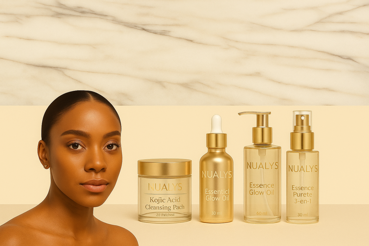 Offrez à votre peau le rituel quotidien qui illumine et révèle l'éclat naturel. Le Duo Rituel d'Or de Nualys réunit nos deux indispensables