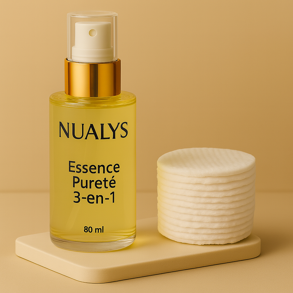 La Lotion Essence Pureté 3-en-1 purifie, lisse et illumine instantanément la peau.